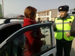 Патрулдук милиция Баткенде айдоочу айымдарды куттуктап жатышат