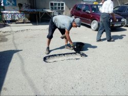 Баткендик Ж.Мухамадиев 100 килограммдык кочкор багып жатат