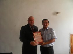 Баткен облусунун өкүлү Ж.Разаков БатМУнун мугалимдерин жана студенттерин «Баткен 2014» эл аралык форумга активдүү катышкандыгы үчүн сыйлады